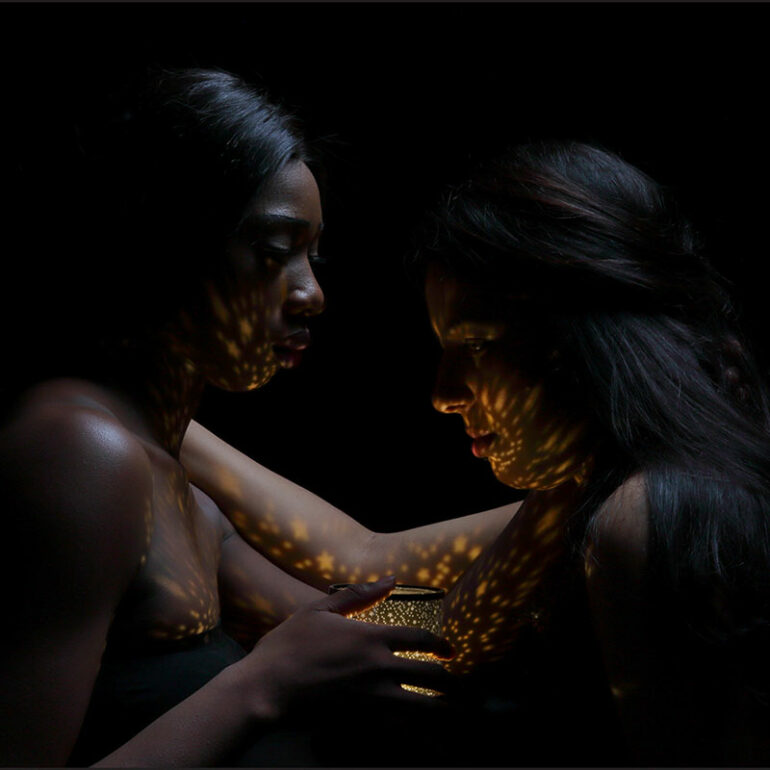 Avec la combinaison de deux techniques d’éclairage, j’ai choisis de matérialiser le lien de chaque binome par une lumière colorée qui leur est propre.